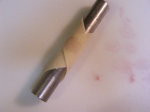 Once the tube and shells are cool enough to handle (this is going to be about 5 minutes or more), remove the shell from the tube by holding the shell in one hand and using the other hand to twist and pull the tube out of the shell. This is the second place in the recipe where you’re likely to get burned. The tubes retain heat for a long time.