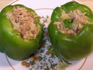 Pictured here are the peppers before cooking. Don’t use the picture as a sign they’re ready to eat. Cook them first according to directions. Maybe soon I’ll do this again and won’t overcook the peppers. Then I’ll have a good picture of what they look like cooked.