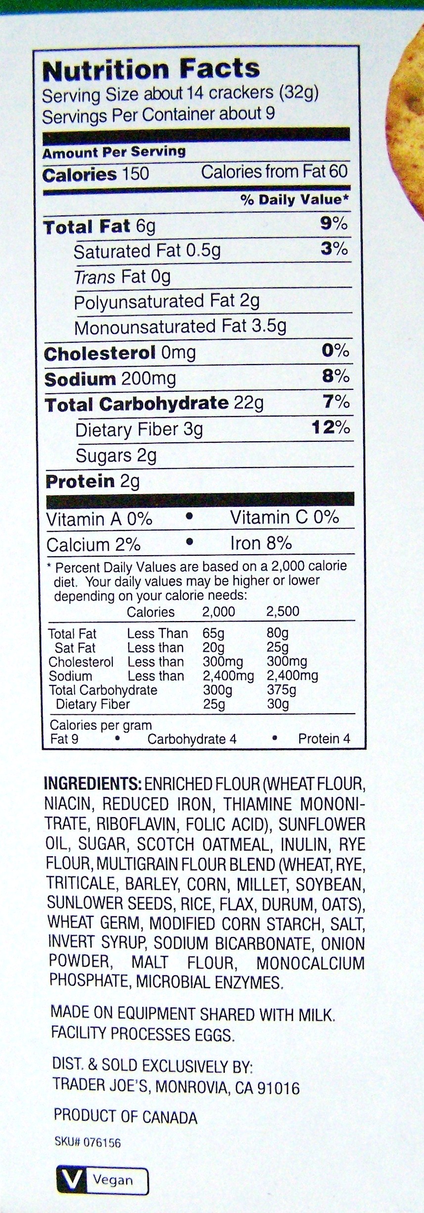 These crackers are sort of addictive.  They remind me of another cracker I’ve had before but just can’t remember which one.  A Ritz cracker is my best guess of what they remind me of, without actually having a Ritz here to taste along side TJ’s Multigrain.   Regardless, whatever they may or may not taste like, these are excellent.