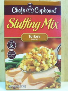 Don’t worry. Chances are the only great expectations your family has are sitting on a book shelf. And, just like years past, that old standby boxed stuffing (or dressing, for anyone who’s a little stuffy themselves) will come to the rescue for you. A couple of boxes, some water, a whole lot of margarine and 10 minutes cooking time will get you out your door and on the way. No matter how it comes out your family is going to eat it. Both you and the family know that.