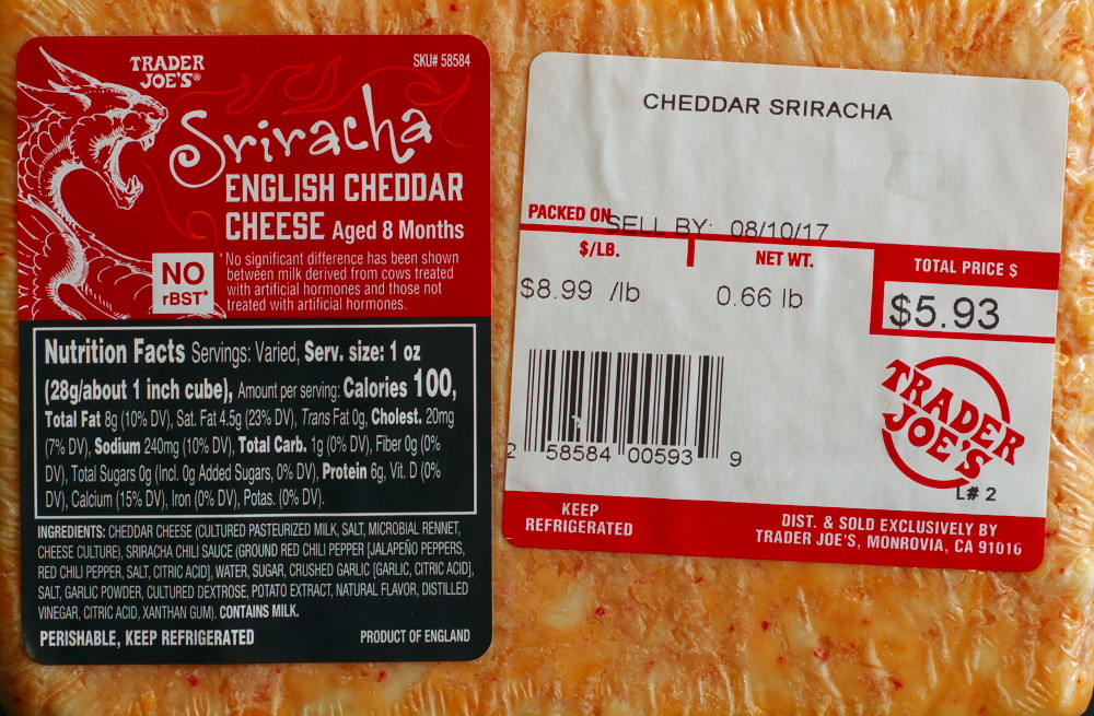 Tags: calories, cheese, food, price, review, reviews, sharp cheddar, sriracha english cheddar, tj, tj's, trader joe's