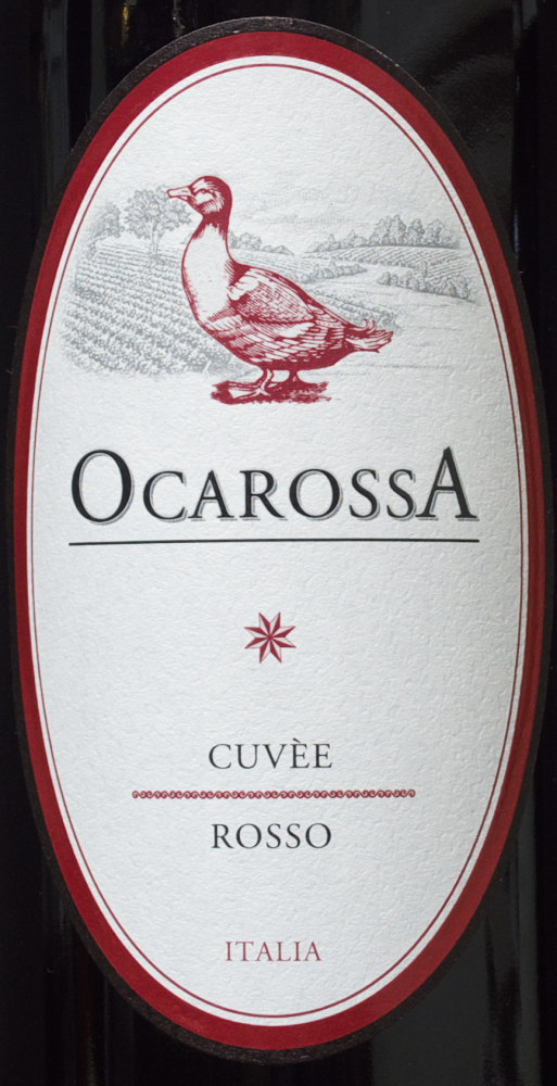 Two things are of interest.  One is the somewhat disjointed backstory on the bottle explaining how this wine got its name.  There are mosquitos, birds, woods, a pond, a red goose, a zen master (?) and of course grape vines in the story.  All this, I suppose, means the grapes are grown in harmony with nature.  And the name?  “Oca rossa” means red goose in Italian.  Ocarossa is the red goose that lives in the pond.