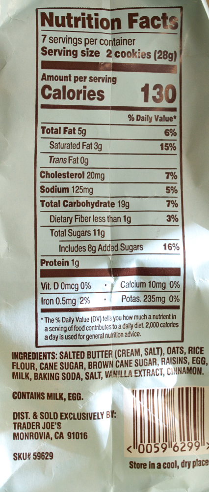 Tags: calories, cookies, crispy, food, nutrition, oatmeal raisin, price, review, tj, tj's, trader joe's