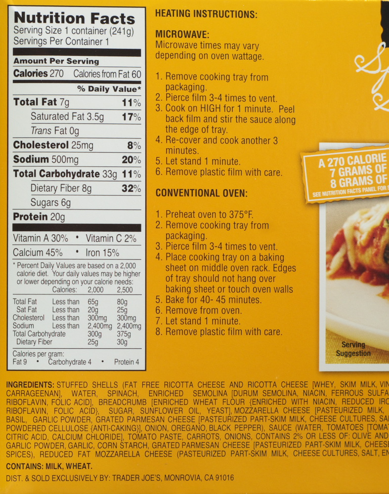 Tags:box lunch, calories, food, frozen box lunches, italian, nutrition, price, review, reviews, spinach cheese shells, tj, tj's, trader joe's
