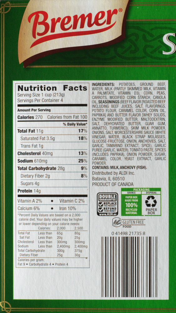 Tags:aldi, bremer, calories, food, nutrition, price, review, reviews, shepherd's pie