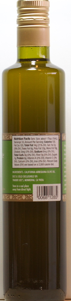 Tags:california estate olive oil, calories, compare, extra virgin, food, olive oil, price, review, tj, tj's, trader joe's