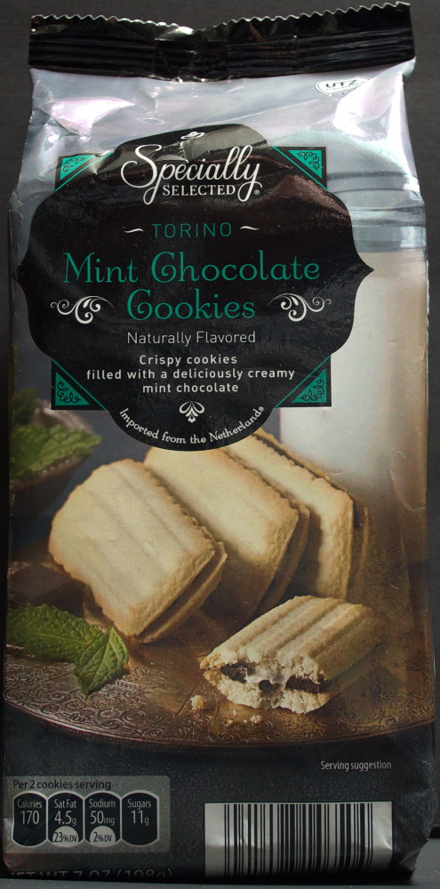 These are pretty good cookies. There’s a nice mint chocolate center sandwiched between two cookies. I suppose the nearest comparison would be to a Pepperidge Farms Milano. This cookie is firmer than the Milano. It’s not as dainty. While this may not be 100% as good as a Milano, it’s still good enough to eat the whole bag. And it will save a little money over a Milano.